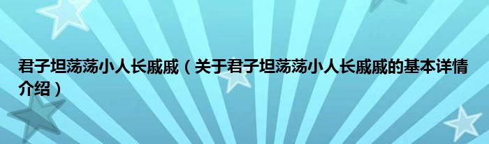 本文关于君子坦荡荡小人长戚戚的基本详情介绍就讲解完毕,希望对大家有所帮助。