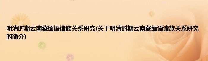 本文关于明清时期云南藏缅语诸族关系研究的简介就讲解完毕,希望对大家有所帮助。