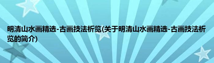 本文关于明清山水画精选-古画技法析览的简介就讲解完毕,希望对大家有所帮助。