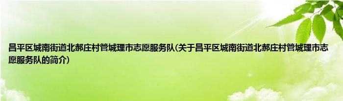 本文关于昌平区城南街道北郝庄村管城理市志愿服务队的简介就讲解完毕,希望对大家有所帮助。