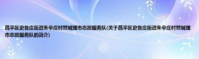 本文关于昌平区史各庄街道朱辛庄村管城理市志愿服务队的简介就讲解完毕,希望对大家有所帮助。