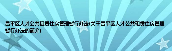 本文关于昌平区人才公共租赁住房管理暂行办法的简介就讲解完毕,希望对大家有所帮助。