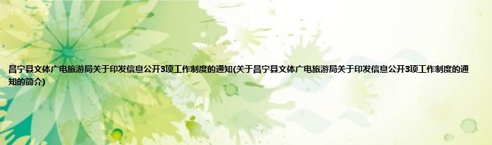 本文关于昌宁县文体广电旅游局关于印发信息公开3项工作制度的通知的简介就讲解完毕,希望对大家有所帮助。