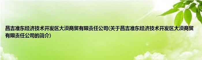 本文关于昌吉准东经济技术开发区大漠商贸有限责任公司的简介就讲解完毕,希望对大家有所帮助。
