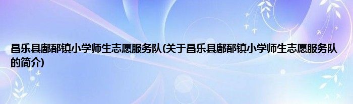 本文关于昌乐县鄌郚镇小学师生志愿服务队的简介就讲解完毕,希望对大家有所帮助。