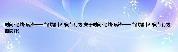 本文关于时间·地域·痕迹——当代城市空间与行为的简介就讲解完毕,希望对大家有所帮助。