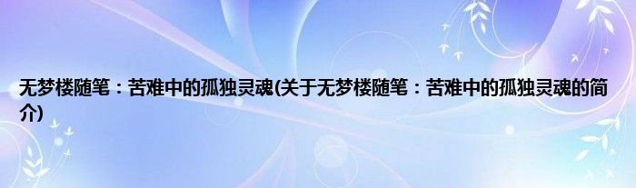 本文关于无梦楼随笔:苦难中的孤独灵魂的简介就讲解完毕,希望对大家有所帮助。