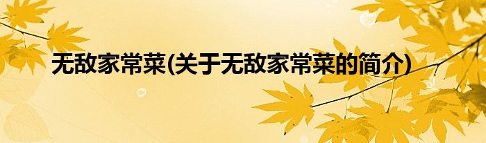 大家好,无敌家常菜,关于无敌家常菜的简介很多人还不知道,现在让我们一起来看看吧!