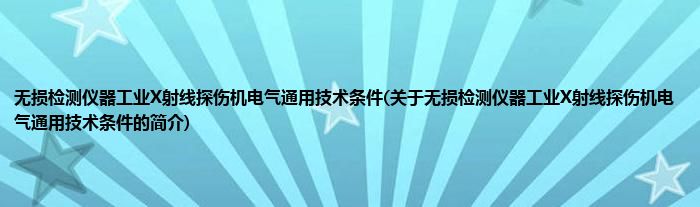 大家好,无损检测仪器工业X射线探伤机电气通用技术条件,关于无损检测仪器工业X射线探伤机电气通用技术条件的简介很多人还不知道,现在让我们一起来看看吧!
