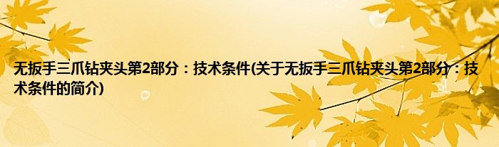 本文关于无扳手三爪钻夹头第2部分:技术条件的简介就讲解完毕,希望对大家有所帮助。