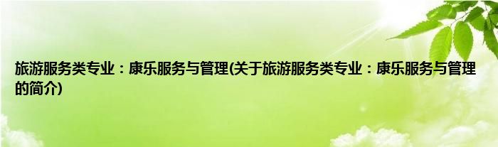 本文关于旅游服务类专业:康乐服务与管理的简介就讲解完毕,希望对大家有所帮助。