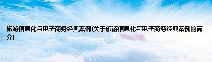 本文关于旅游信息化与电子商务经典案例的简介就讲解完毕,希望对大家有所帮助。