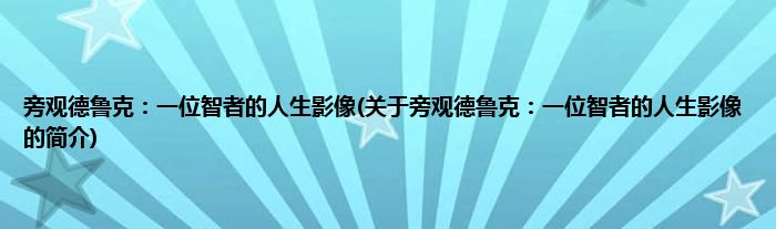 大家好,旁观德鲁克:一位智者的人生影像,关于旁观德鲁克:一位智者的人生影像的简介很多人还不知道,现在让我们一起来看看吧!