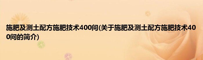 本文关于施肥及测土配方施肥技术400问的简介就讲解完毕,希望对大家有所帮助。