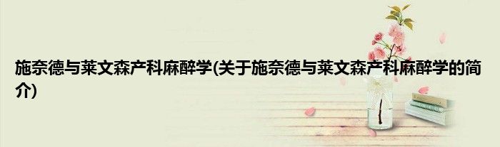大家好,施奈德与莱文森产科麻醉学,关于施奈德与莱文森产科麻醉学的简介很多人还不知道,现在让我们一起来看看吧!