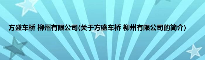 本文关于方盛车桥 柳州有限公司的简介就讲解完毕,希望对大家有所帮助。