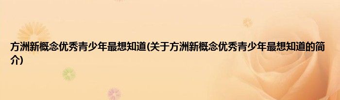 本文关于方洲新概念优秀青少年最想知道的简介就讲解完毕,希望对大家有所帮助。