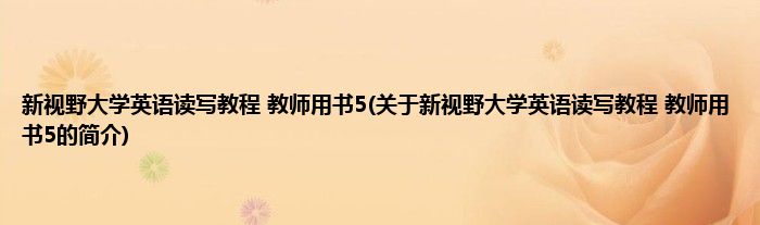 1、 《新视野大学英语读写教程(教师用书5)》是2004年外语教学与研究出版社出版的图书。