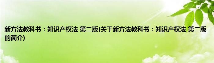 本文关于新方法教科书:知识产权法 第二版的简介就讲解完毕,希望对大家有所帮助。