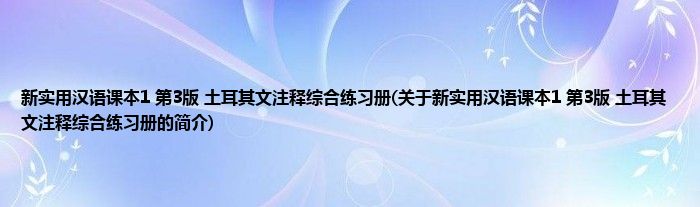 1、 《新实用汉语课本1(第3版)(土耳其文注释)综合练习册》是2017年北京语言大学出版社出版的图书。