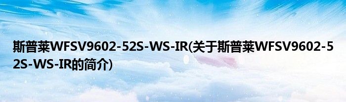 本文关于斯普莱WFSV9602-52S-WS-IR的简介就讲解完毕,希望对大家有所帮助。