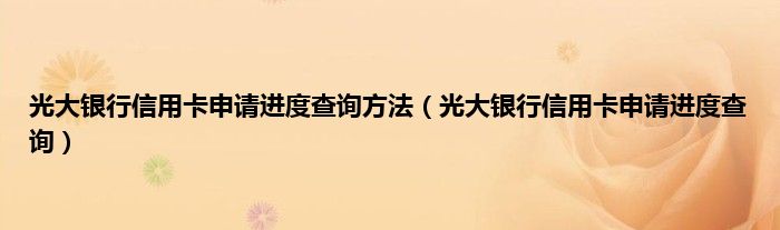 光大银行信用卡申请进度查询方法(光大银行信用卡申请进度查询)