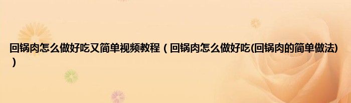 回锅肉怎么做好吃又简单视频教程(回锅肉怎么做好吃(回锅肉的简单做法))
