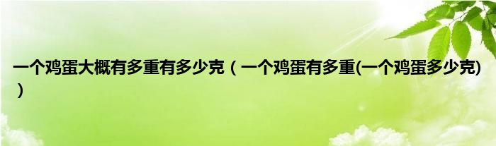 大家好,小科来为大家解答以上问题。一个鸡蛋大概有多重有多少克,一个鸡蛋有多重(一个鸡蛋多少克)很多人还不知道,现在让我们一起来看看吧!
