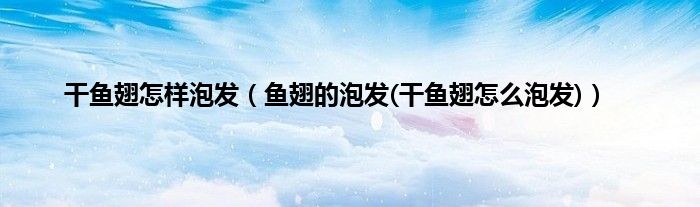 大家好,小科来为大家解答以上问题。干鱼翅怎样泡发,鱼翅的泡发(干鱼翅怎么泡发)很多人还不知道,现在让我们一起来看看吧!