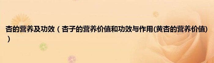 大家好,小科来为大家解答以上问题。杏的营养及功效,杏子的营养价值和功效与作用(黄杏的营养价值)很多人还不知道,现在让我们一起来看看吧!