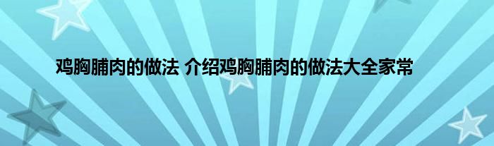 大家好,小科来为大家解答以上问题。鸡胸脯肉的做法,介绍鸡胸脯肉的做法大全家常很多人还不知道,现在让我们一起来看看吧!