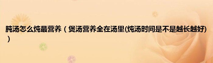 大家好,小科来为大家解答以上问题。肫汤怎么炖最营养,煲汤营养全在汤里(炖汤时间是不是越长越好)很多人还不知道,现在让我们一起来看看吧!
