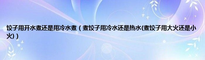 大家好,小科来为大家解答以上问题。饺子用开水煮还是用冷水煮,煮饺子用冷水还是热水(煮饺子用大火还是小火)很多人还不知道,现在让我们一起来看看吧!
