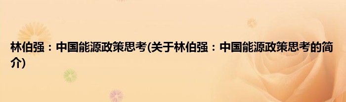 林伯强:中国能源政策思考(关于林伯强:中国能源政策思考的简介)