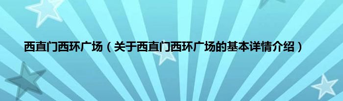 大家好我是小蝌蚪,西直门西环广场,关于西直门西环广场的基本详情介绍很多人还不知道,那么现在让我们一起来看看吧!