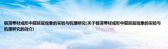 大家好,极薄带材成形中超延展现象的实验与机理研究,关于极薄带材成形中超延展现象的实验与机理研究的简介很多人还不知道,现在让我们一起来看看吧!