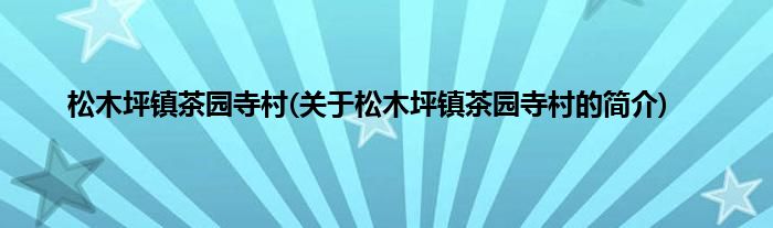 本文关于松木坪镇茶园寺村的简介就讲解完毕,希望对大家有所帮助。