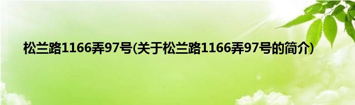 本文关于松兰路1166弄97号的简介就讲解完毕,希望对大家有所帮助。