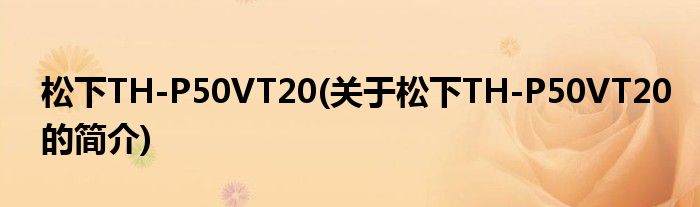 本文关于松下TH-P50VT20的简介就讲解完毕,希望对大家有所帮助。