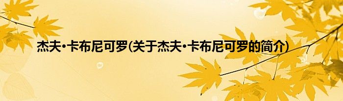 本文关于杰夫·卡布尼可罗的简介就讲解完毕,希望对大家有所帮助。