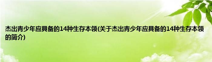 大家好,杰出青少年应具备的14种生存本领,关于杰出青少年应具备的14种生存本领的简介很多人还不知道,现在让我们一起来看看吧!