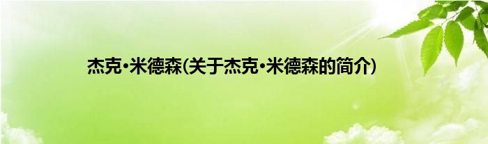 本文关于杰克·米德森的简介就讲解完毕,希望对大家有所帮助。
