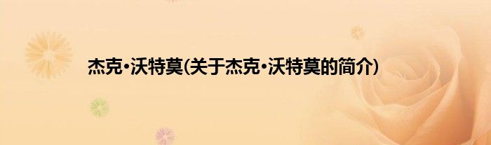 本文关于杰克·沃特莫的简介就讲解完毕,希望对大家有所帮助。
