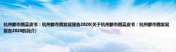 本文关于杭州都市圈蓝皮书:杭州都市圈发展报告2020的简介就讲解完毕,希望对大家有所帮助。