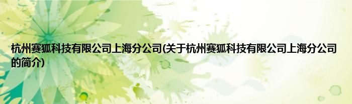 大家好,杭州赛狐科技有限公司上海分公司,关于杭州赛狐科技有限公司上海分公司的简介很多人还不知道,现在让我们一起来看看吧!