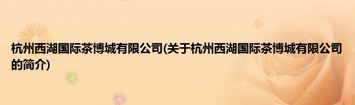 本文关于杭州西湖国际茶博城有限公司的简介就讲解完毕,希望对大家有所帮助。