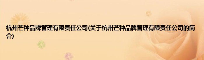 本文关于杭州芒种品牌管理有限责任公司的简介就讲解完毕,希望对大家有所帮助。