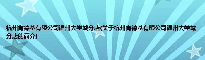 本文关于杭州肯德基有限公司温州大学城分店的简介就讲解完毕,希望对大家有所帮助。