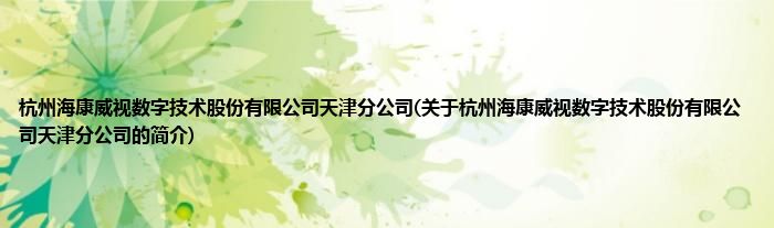 本文关于杭州海康威视数字技术股份有限公司天津分公司的简介就讲解完毕,希望对大家有所帮助。
