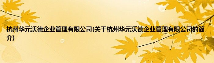 本文关于杭州华元沃德企业管理有限公司的简介就讲解完毕,希望对大家有所帮助。